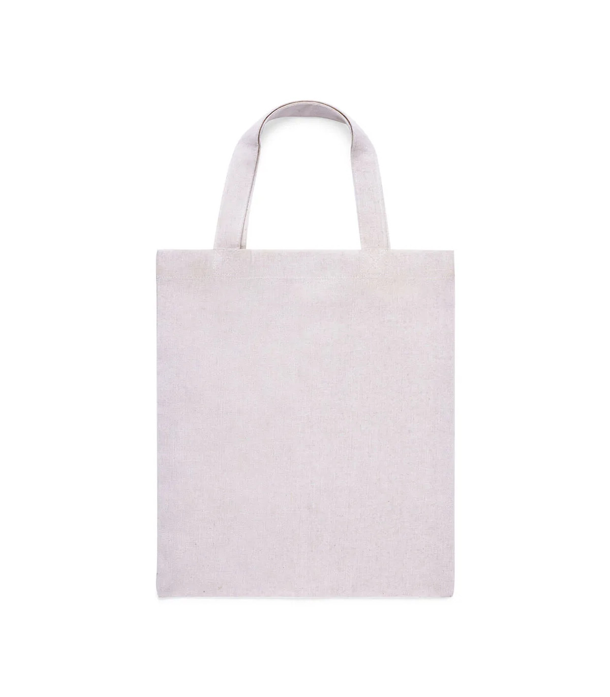 Bolsa fabricada en algodón 100%, de acabado natural y en 120g/m2. De acabado cosido y con asas cortas reforzadas (30 x 2,5cm). Resistencia hasta 5 kg de peso.