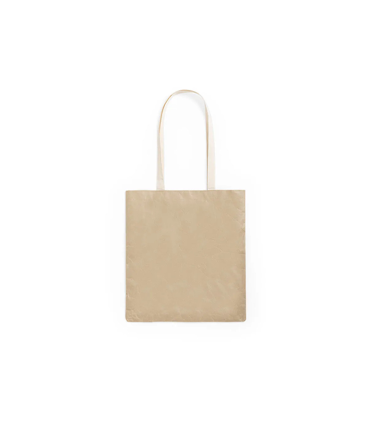 Bolsa de línea nature en resistente papel laminado de 105g/m2, altamente resistente. Asas de algodón largas en color natural. De acabado cosido y resistencia hasta 8kg de peso.