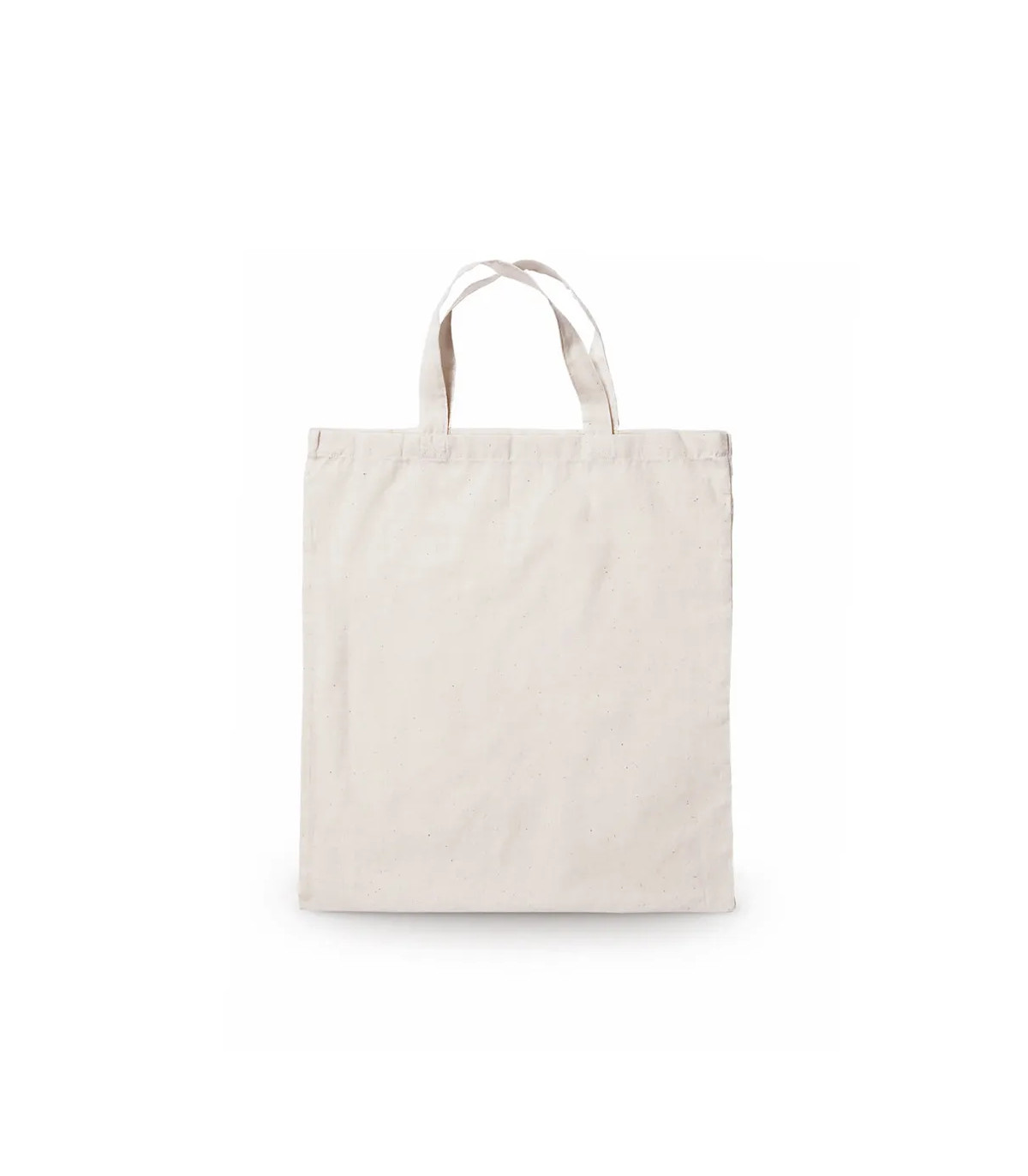Bolsa en material 100% algodón con acabado en color natural. Con asas cortas de 35cm y acabado cosido. Resistencia hasta 7kg de peso.
