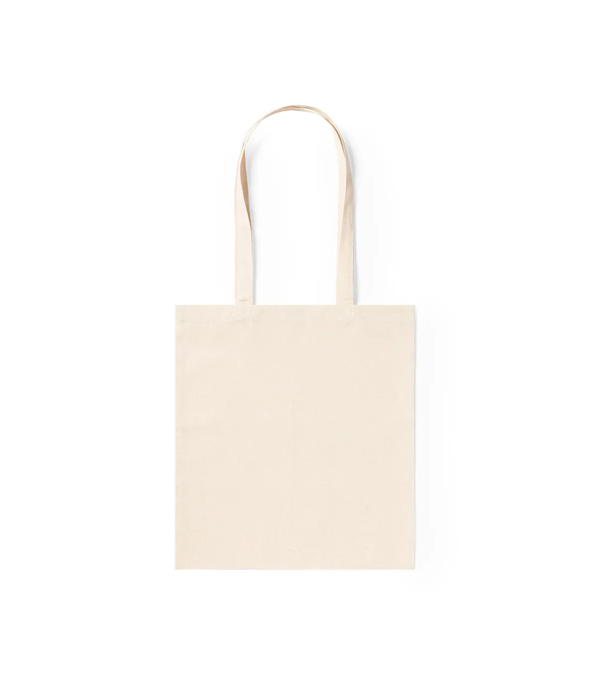 Bolsa fabricada en algodón 100%, de acabado natural y en gramaje extra de 300g/m2. De acabado cosido y asas largas reforzadas (70 x 2,5 cm). Resistencia hasta 10 kg de peso.
