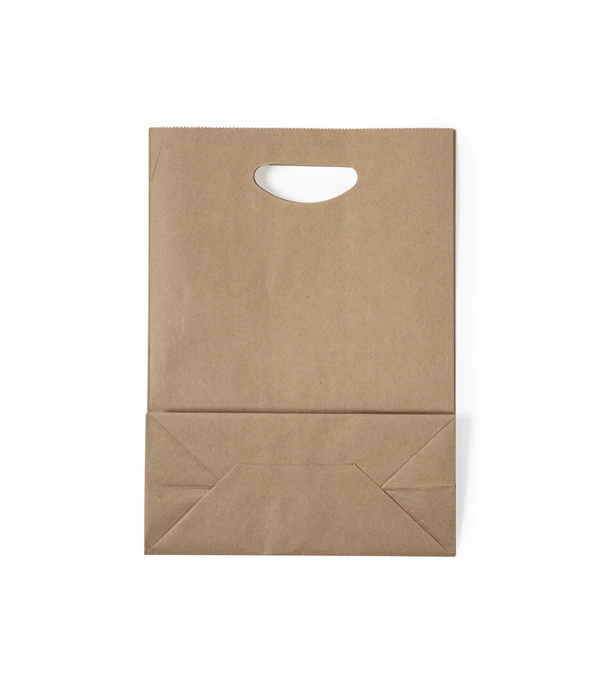 Bolsa ligera de línea nature fabricada en papel reciclado de 80g/m2. Con original asa troquelada y fuelle.