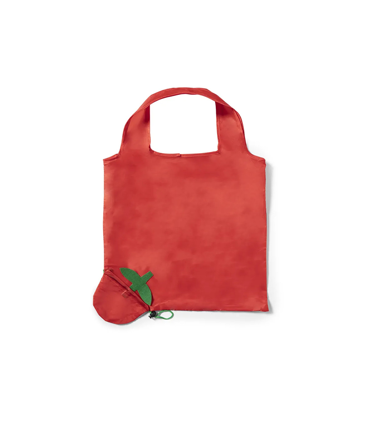 Bolsa plegable de divertidos diseños de frutas en llamativos colores. De suave poliéster 190T, con cordón y accesorio de ajuste.