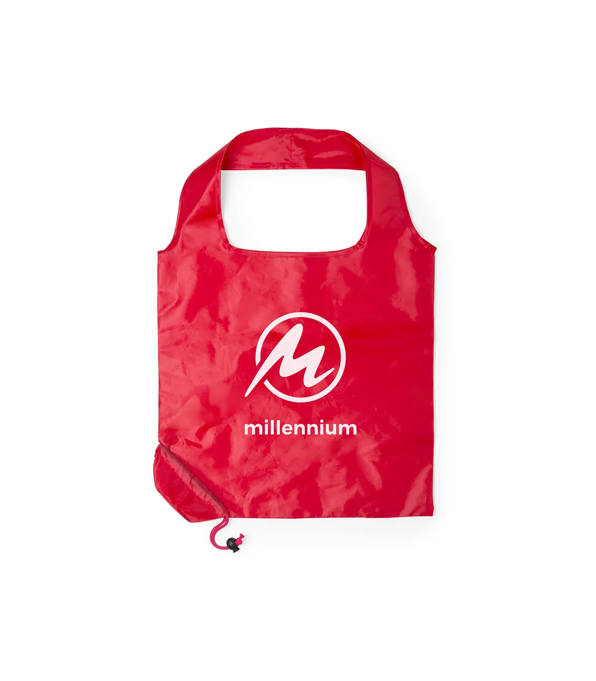 Bolsa plegable en llamativos colores. De suave poliéster 190T, con cómodas asas y con cordón a juego. Accesorio de ajuste para fácil plegado.