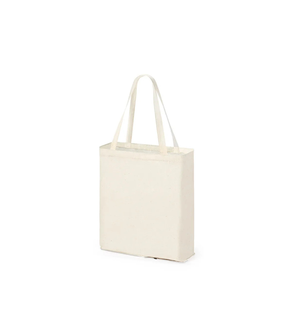 Bolsa plegable de línea nature en combinación de materiales 100% algodón de 110 g/m2 y base en yute, con bolsillo. Asas de 57 cm con refuerzo, de acabado cosido y resistencia hasta 8 kg de peso. Plegado de pequeño tamaño mediante cremallera para un fácil
