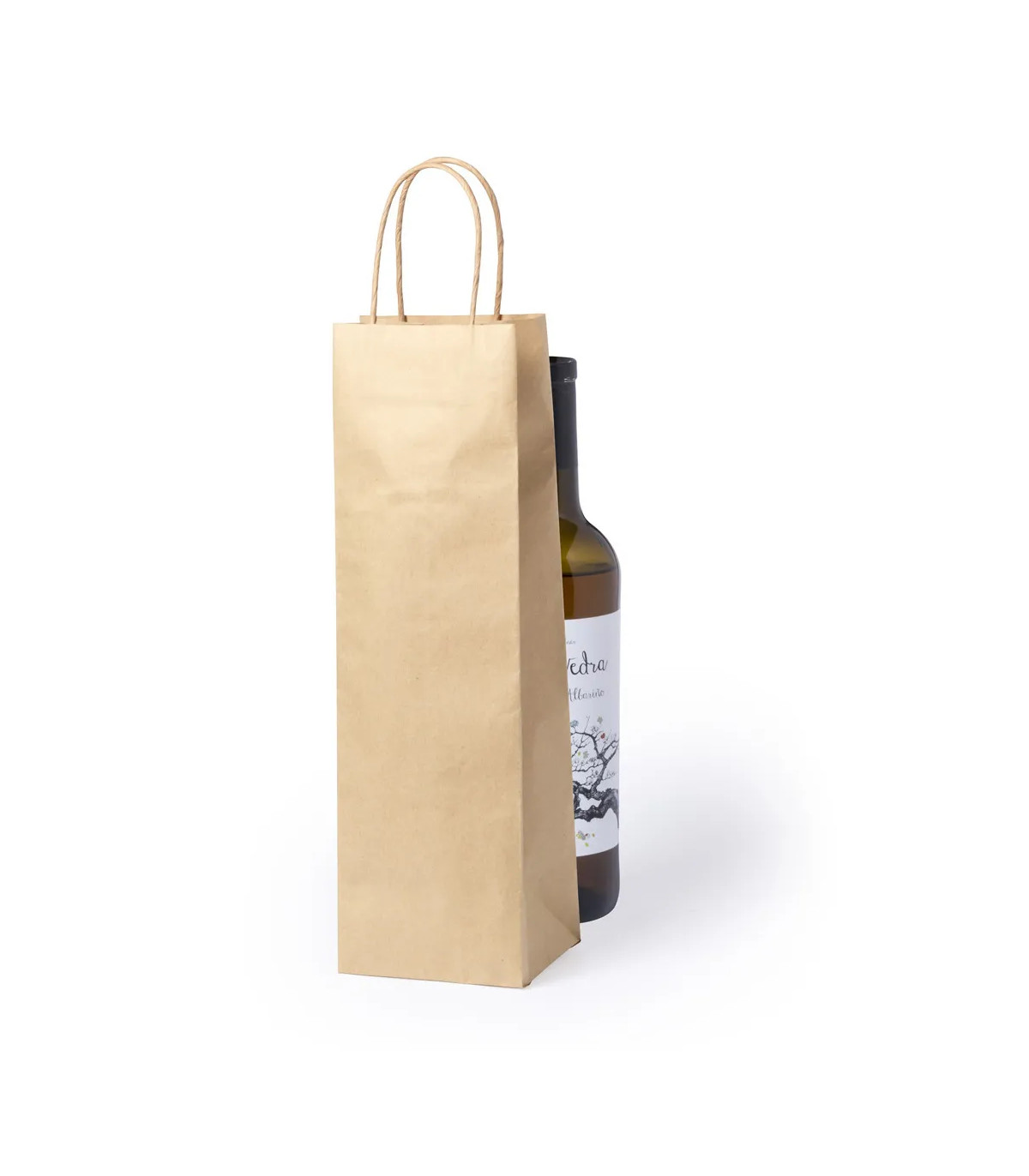 Bolsa en papel de acabado natural de 100g/m2 con asas cortas reforzadas y fuelle. Especialmente diseñada para botellas de hasta 1l.