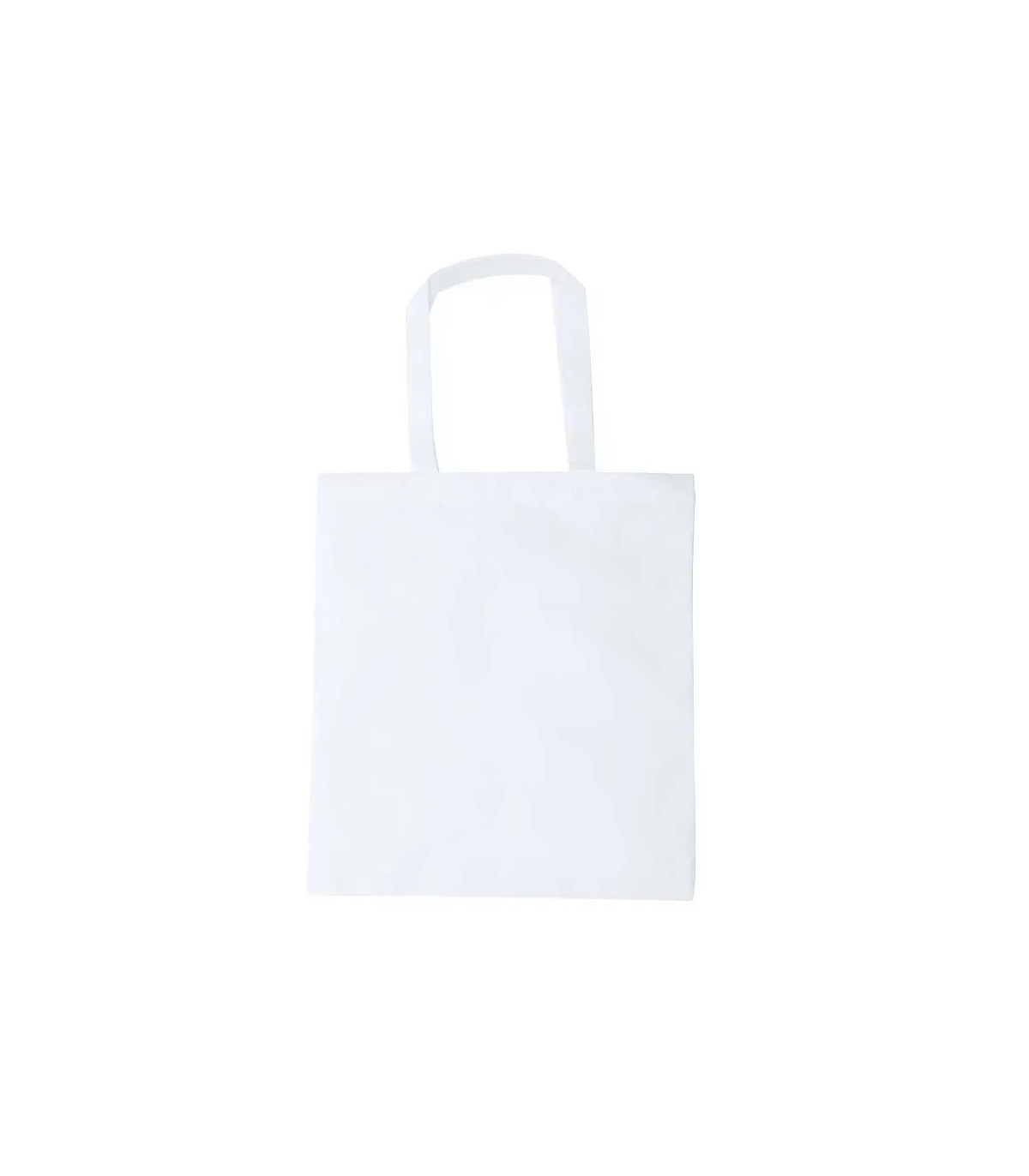 Bolsa de non-woven de 80g/m2 en color blanco especialmente diseñada para marcaje en sublimación. Con asas largas de 60cm y acabado cosido.