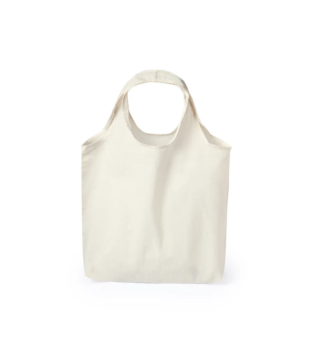Bolsa en material 100% algodón con acabado en color natural. Con originales asas para hombro y de acabado cosido. Resistencia hasta 7kg de peso.