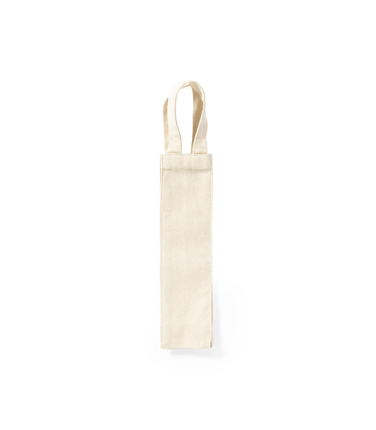 Bolsa de canvas de 220g/m2 para botella de vino de 75cl. En color natural, con resistente acabado cosido y asas reforzadas.