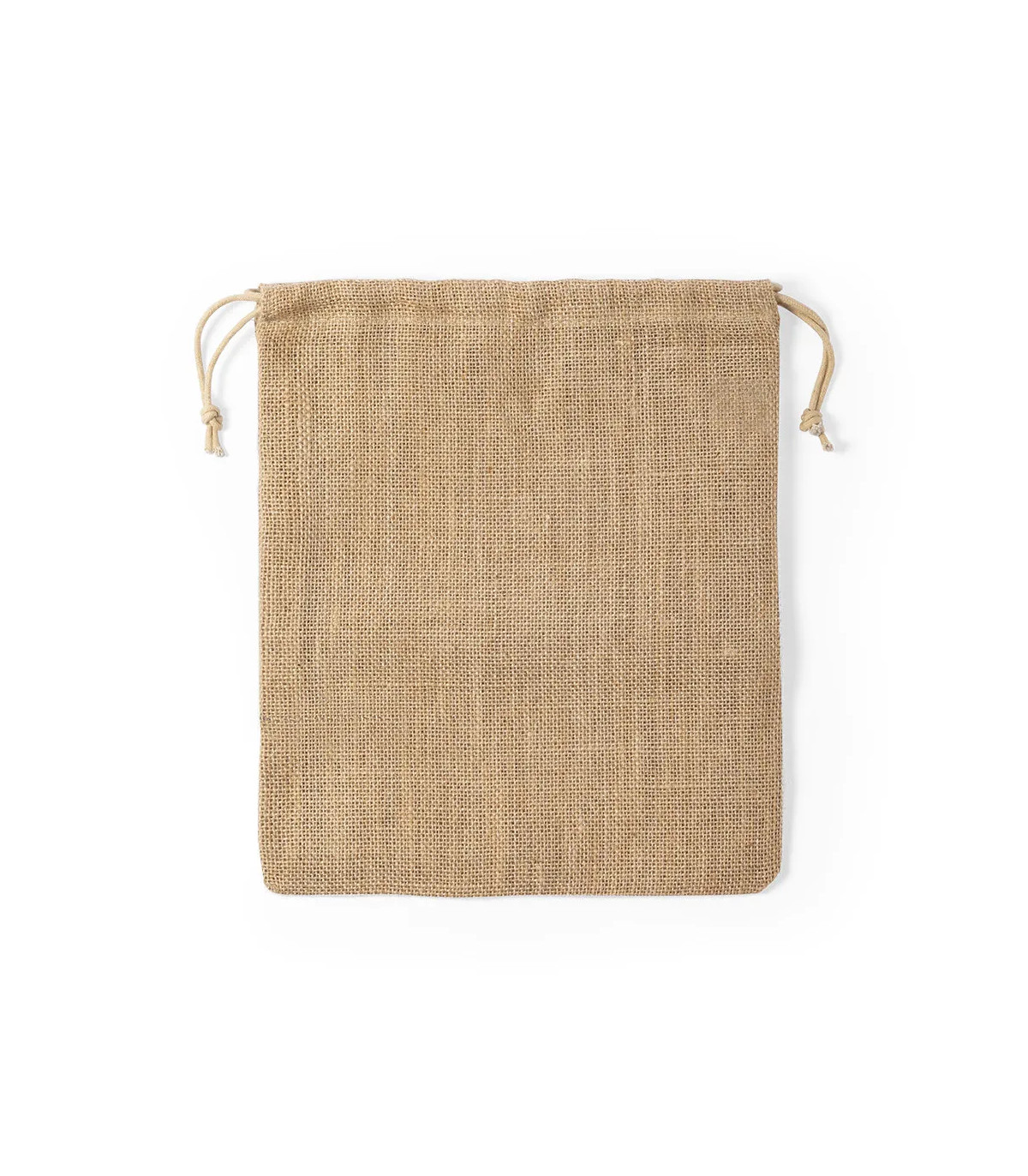 Bolsa de línea nature en resistente yute de 260gsm, con elegante cierre de cordón y acabado cosido.
