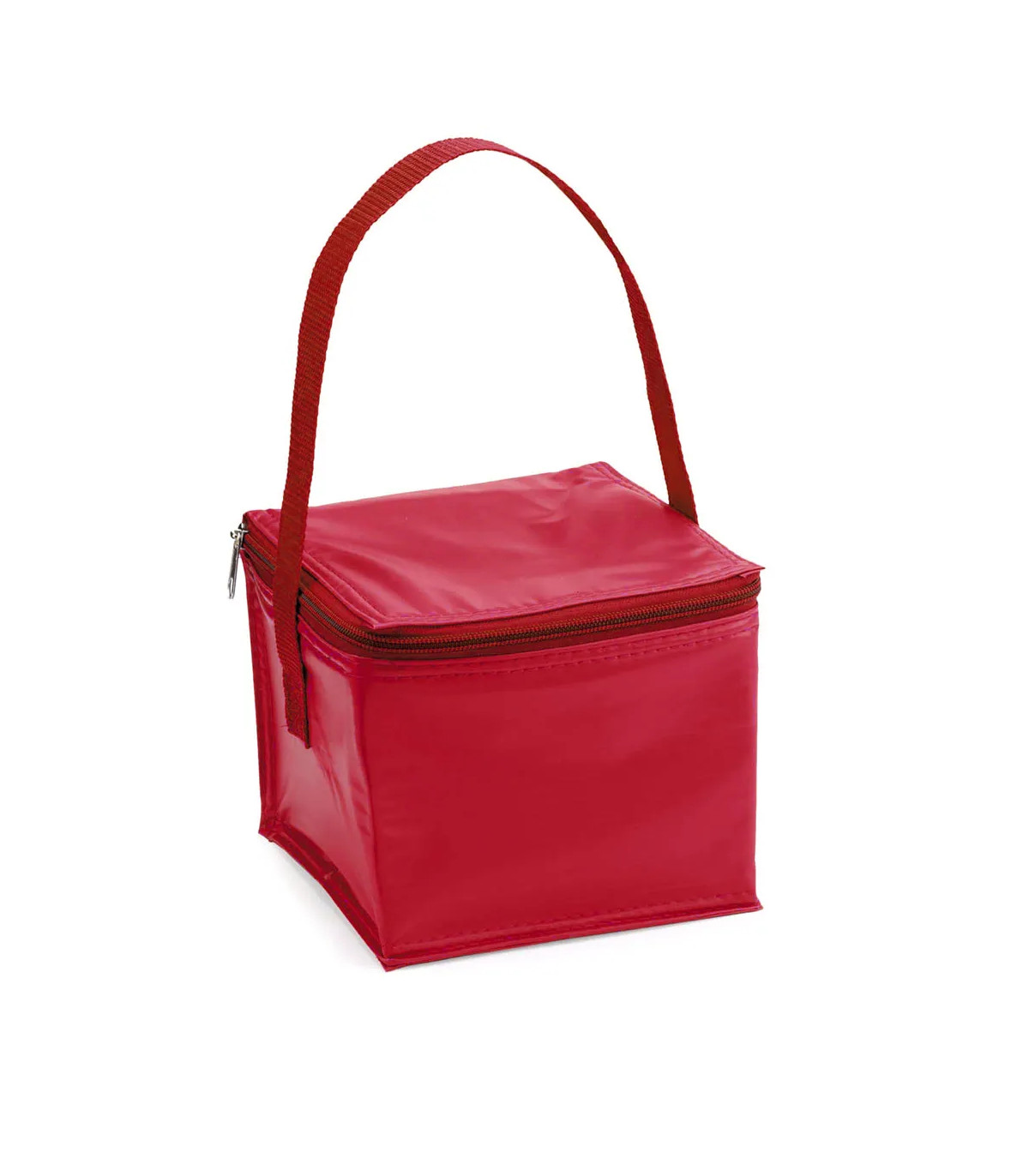 Nevera de 4 latas en resistente PVC de vivos colores. Interior isotermo en acabado de aluminio. Con cremallera y asa de transporte a juego.