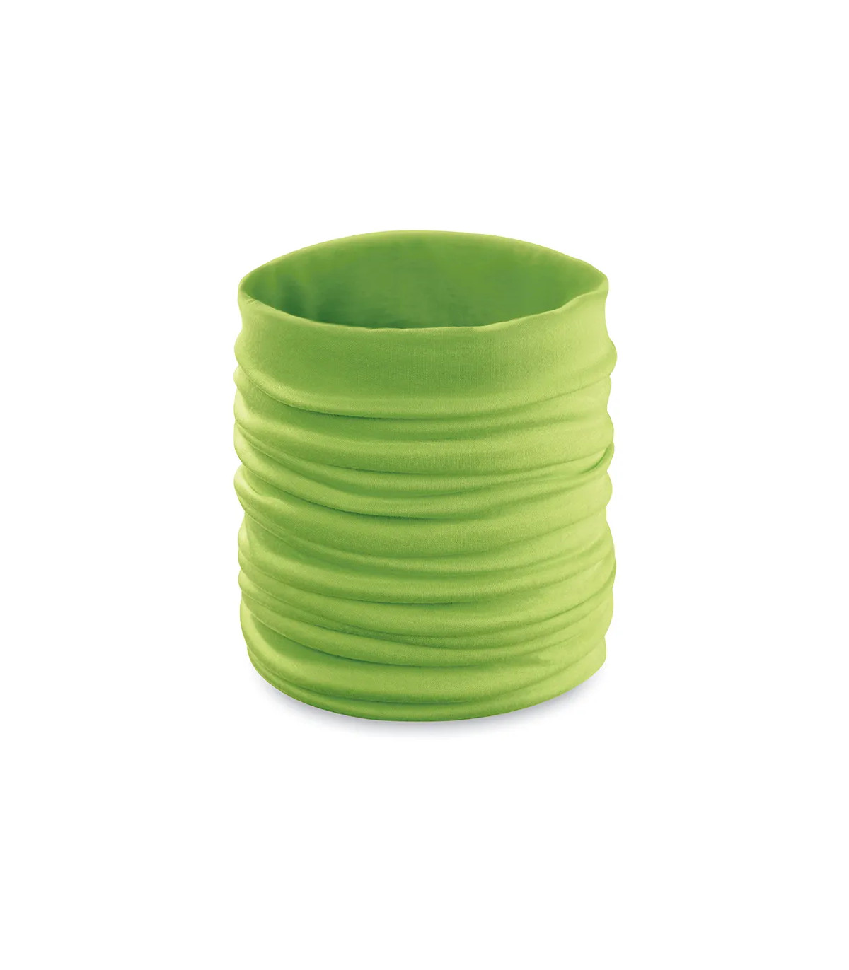 Braga multiposición de alta calidad en suave poliéster elástico. Disponible en extensa gama de colores y de fácil impresión. Color blanco especialmente diseñado para impresión en sublimación.