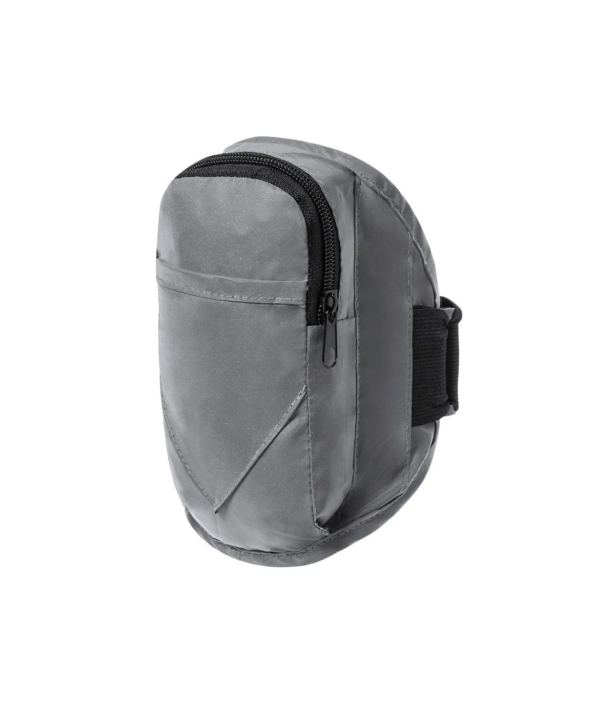 Brazalete deportivo en poliéster 210T, fabricado empleando tejido con gran capacidad para reflejar intensamente la luz, gracias a millones de pigmentos reflectantes y basándose en el principio de la retro-reflexión de la luz, una propiedad de visibilidad