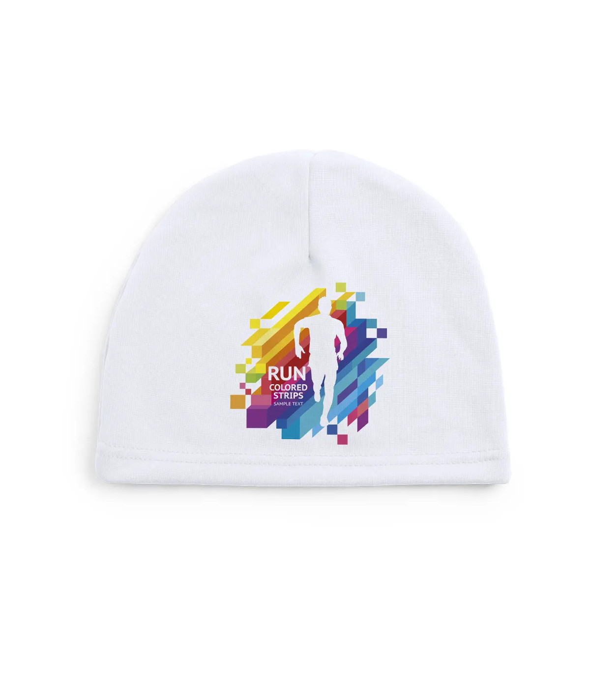 Gorro deportivo de alta calidad en combinación de materiales poliéster/spandex y coral fleece de 280g/m2. Color blanco ideal para sublimación y resto de gama de colores ideales para una fácil impresión. Cómodo ajuste.