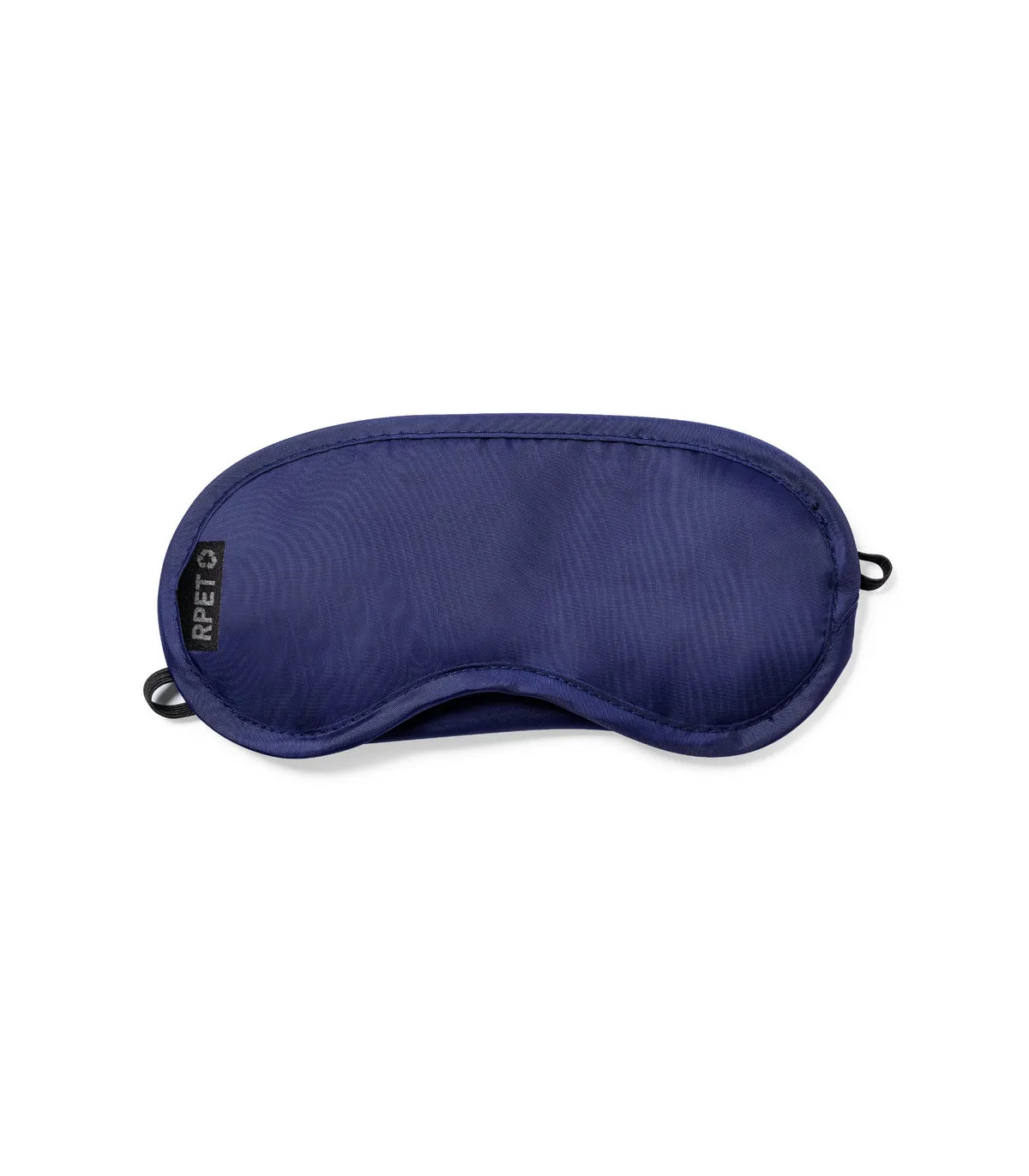 Máscara de viaje de suave y confortable ajuste, disponible en variada gama de colores. Fabricada en RPET, con doble elástico de sujeción y presentada en funda individual a juego de RPET con cierre de cordón. Distintivo RPET en máscara y funda. El material RPET se elabora a partir de plástico reciclado, para así fomentar la reutilización de residuos plásticos y ayudar a la sostenibilidad del planeta.