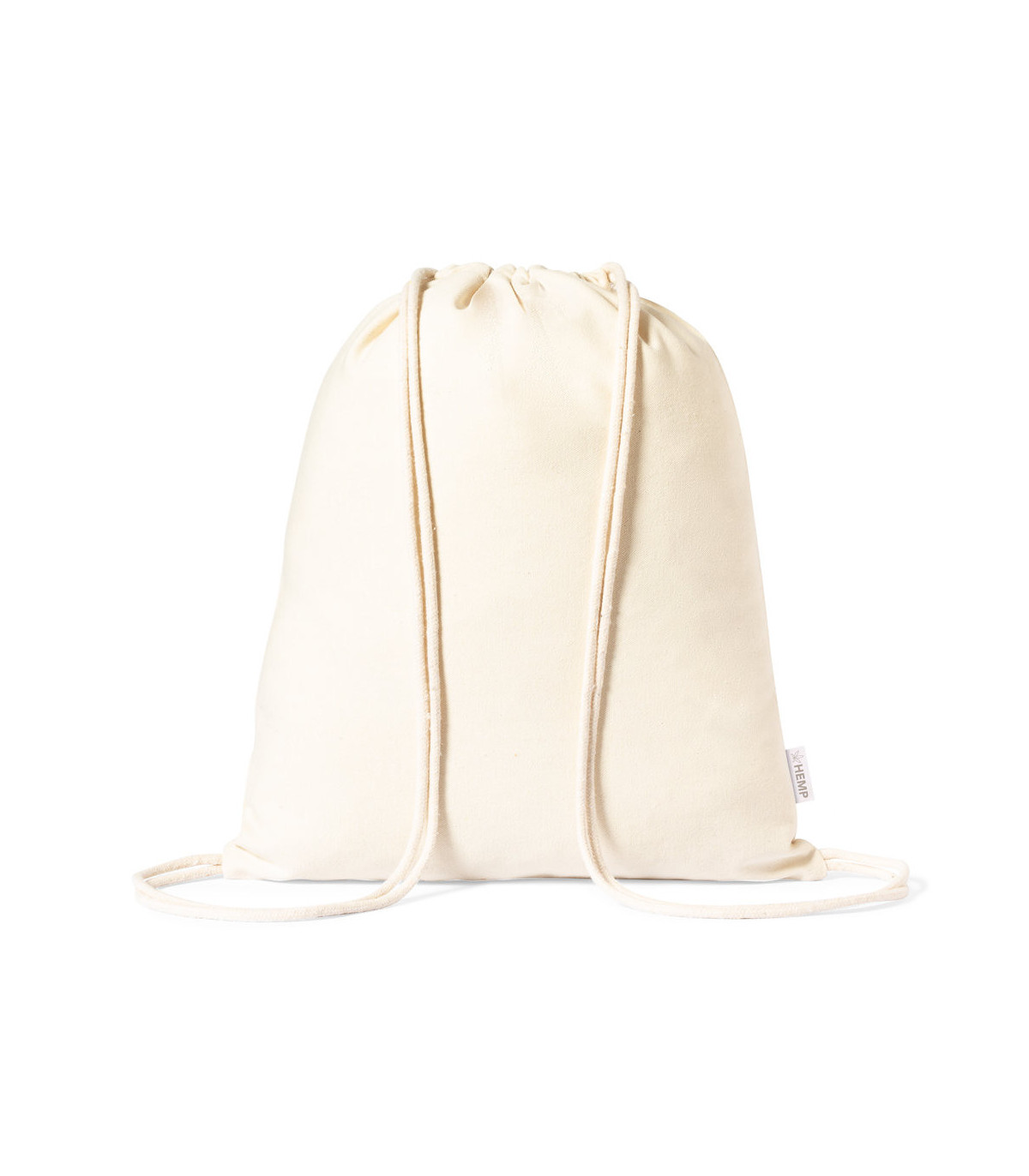 Mochila de cuerdas de línea nature. Fabricada en tela de cáñamo y algodón de acabado natural de alto gramaje (300g/m2). Compartimento principal con cordones en algodón y etiqueta exterior con distintivo cáñamo. El cáñamo se obtiene de la planta cannabis, cuyos procesos tanto de cultivo como de obtención de fibras son respetuosos con el medio ambiente, dando como resultado un material de gran resistencia, de origen natural y sostenible.