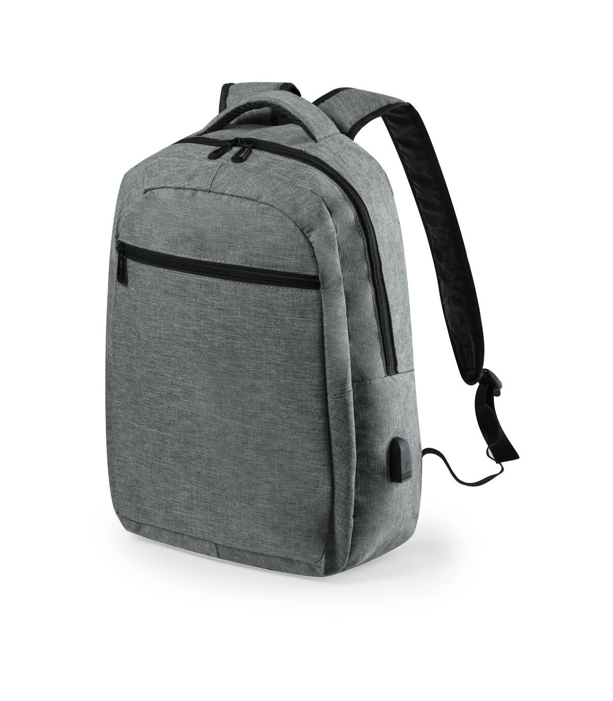 Mochila de negocios en resistente poliéster 600D. Con cierre de cremallera de doble tirador y bolsillo en frontal. Interior con bolsillos acolchados para tablet de hasta 10 pulgadas y ordenador portátil de hasta 15 pulgadas, con estación de carga USB (cab