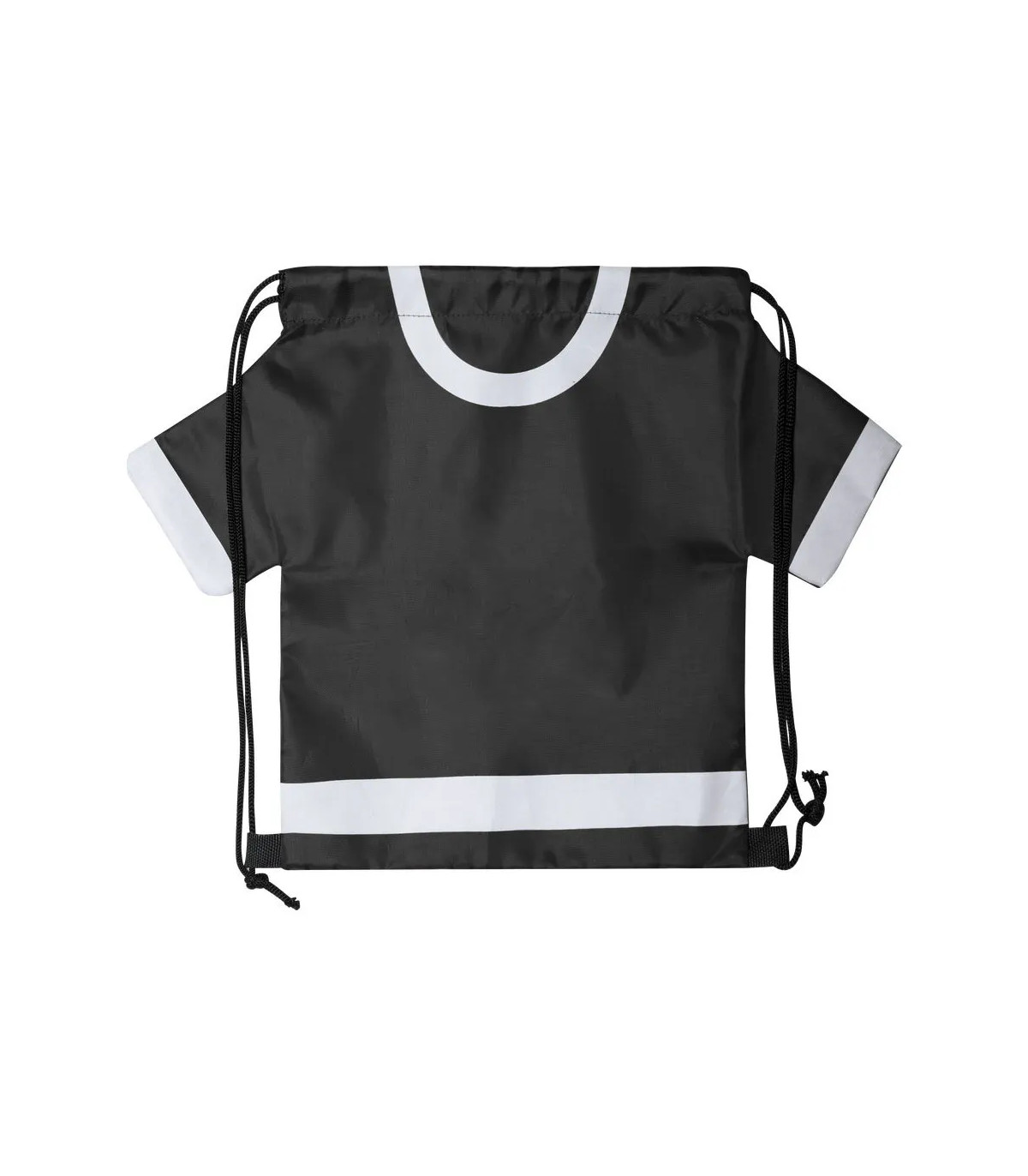 Original y divertida mochila de cuerdas para adulto en forma de camiseta. En suave poliéster 210D, con cuerdas autocierre en color negro y esquinas reforzadas. disponible en variada gama de colores intensos.