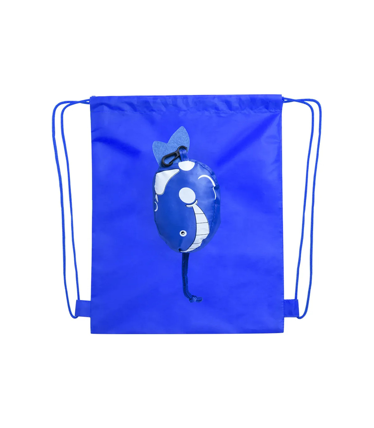 Mochila de cuerdas plegable para niño, en poliéster 190T de alegre diseño de animales y variada gama de colores. Con asa de transporte, cuerdas autocierre y refuerzos laterales a juego. Plegado de pequeño tamaño en forma de animalitos, con cuerda a juego y accesorio de ajuste.