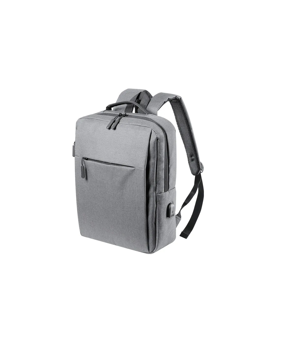 Mochila de negocios en resistente poliéster 600D. Con cierre de cremallera de doble tirador y multitud de bolsillos. Interior con bolsillo acolchado para ordenador portátil de hasta 15 pulgadas. Compartimento interior con salida USB para conexión de power
