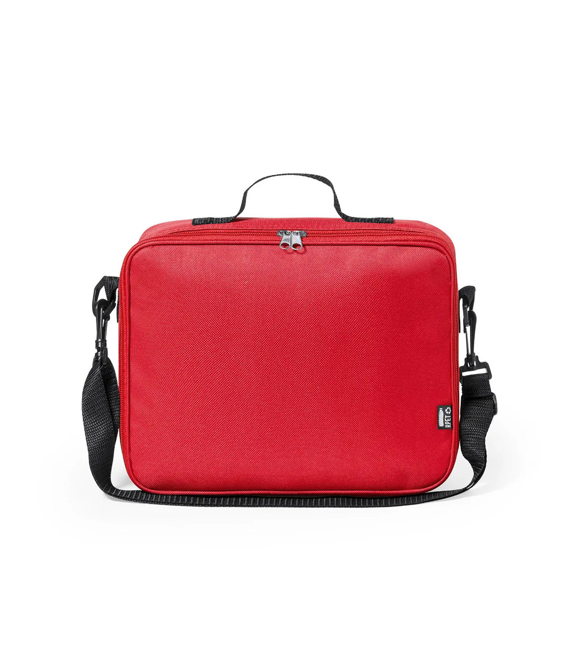 Nevera para niño de línea nature y en resistente 600D RPET, elaborado a partir de plástico reciclado para así fomentar la reutilización de residuos plásticos y contribuir a la sostenibilidad del planeta. Detalles en negro y base reforzada. Compartimento p
