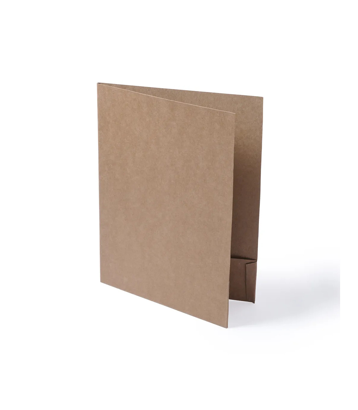 Carpeta en resistente cartón reciclado de acabado rígido. Interior con dos bolsillos de solapa.