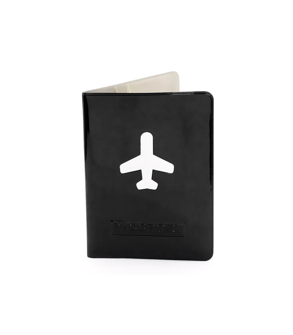 Funda para pasaportede diseño de avión en resistente PVC y vivos colores. Con interior multibolsillo.