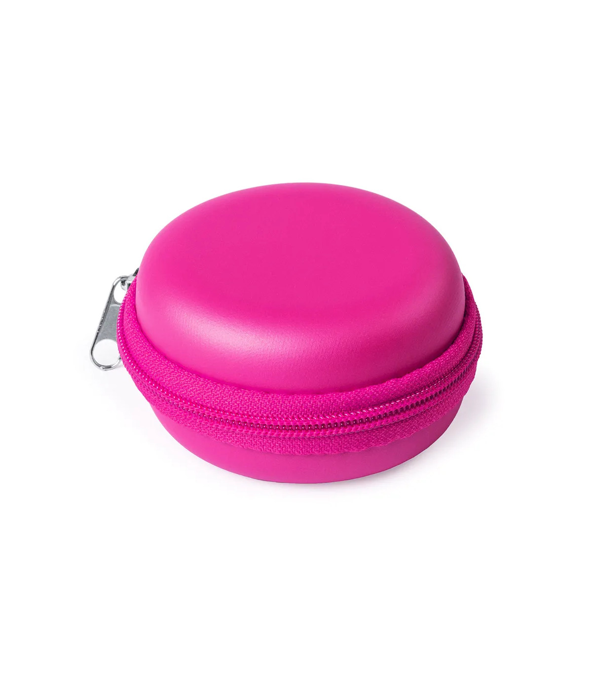 Funda para memoria USB con en desenfadados colores, con cremallera a juego y de acabado en suave polipiel.