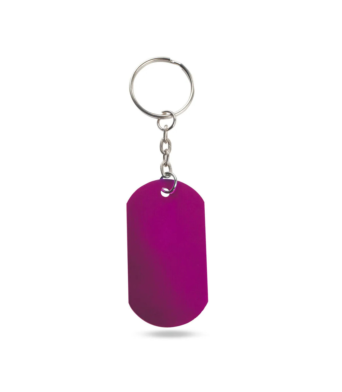 Llavero chapa con cuerpo de aluminio en variados y vivos colores. Especialmente diseñado para marcaje en láser.
