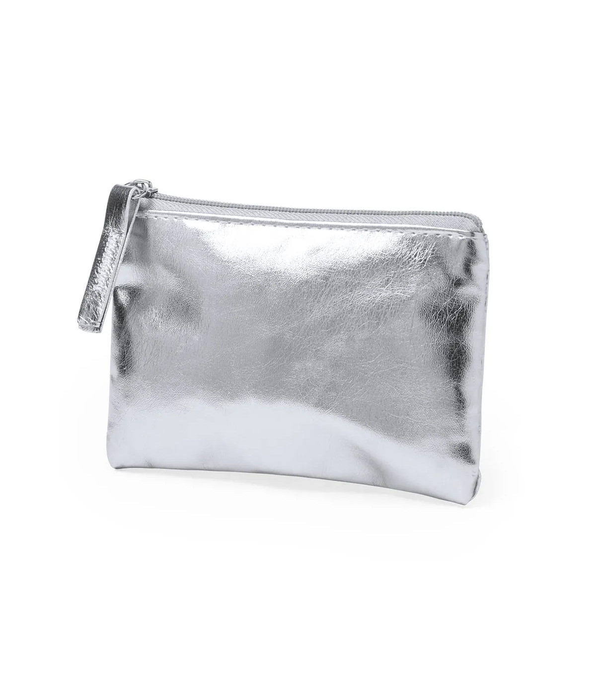 Monedero de diseño super cuqui con suave cuerpo acabado en brillante polipiel. Disponible en colores dorado, plateado y oro rosa. Compartimento principal con cierre de cremallera y tirador a juego.