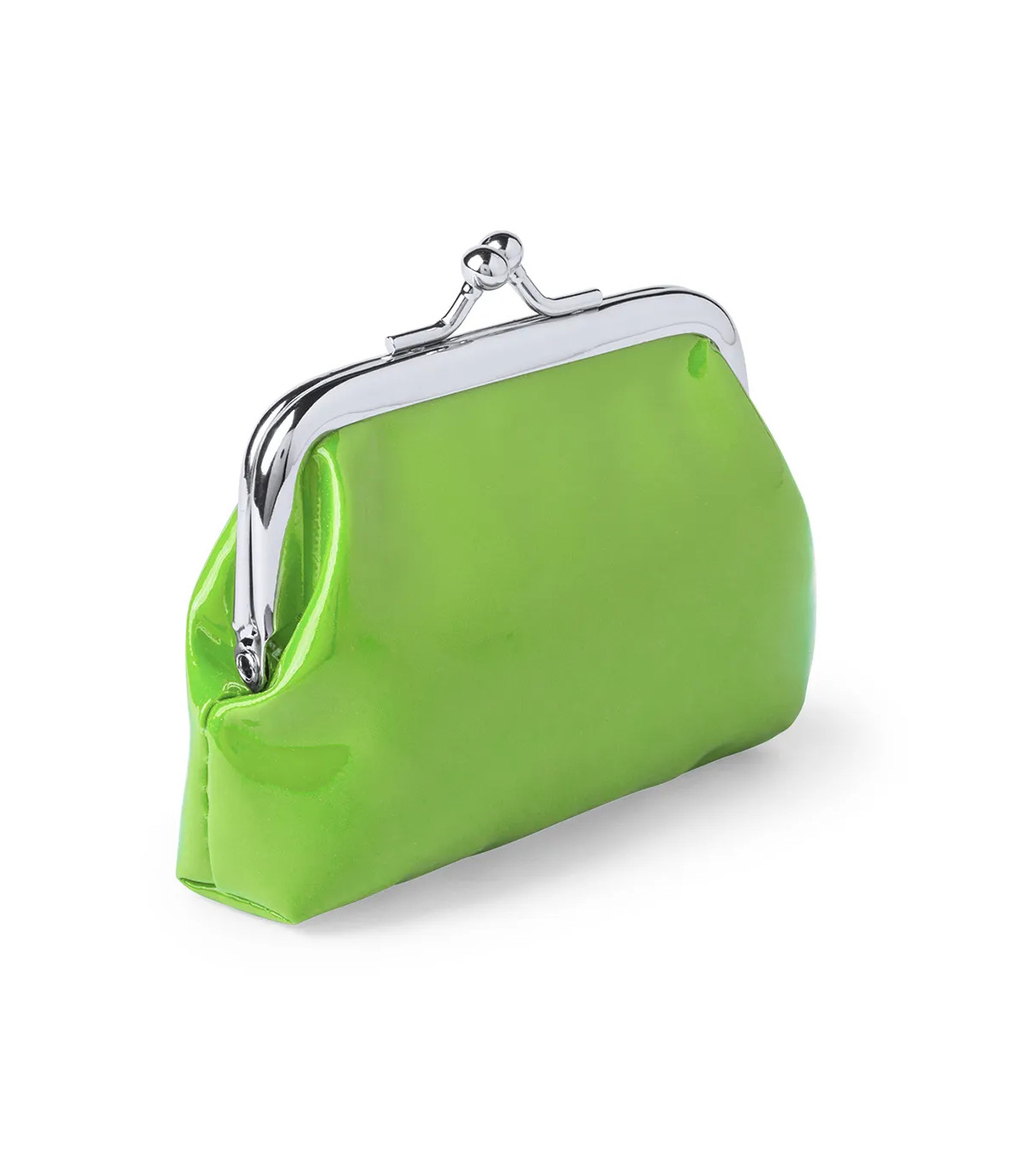 Monedero de alegre diseño con suave cuerpo acabado en PVC brillante en variada gama de vivos colores. Compartimento principal con cierre de clic metálico reforzado.