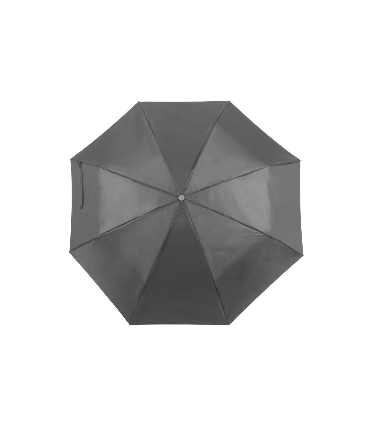 Paraguas plegable de 8 paneles de poliéster 170T en extensa gama de vivos colores y 96cm de diámetro. De apertura manual, con varillas metálicas en color plateado, cierre de velcro y cinta de transporte en mango ergonómico. Presentado en funda individual a juego.