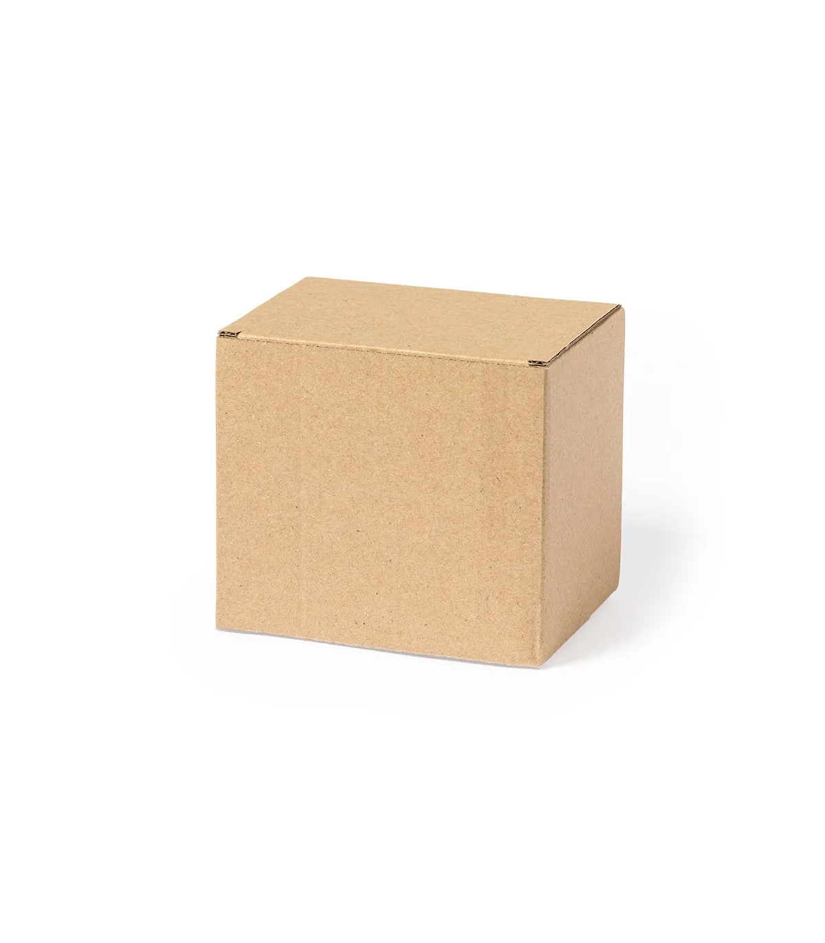 Caja de presentación especialmente diseñada para tazas. Tamaño 12x10,6x9 cm y fabricada en cartón reciclado corrugado de acabado kraft. En línea con la tendencia del mercado hacia la sostenibilidad integral del regalo, ofreciendo soluciones de origen reci