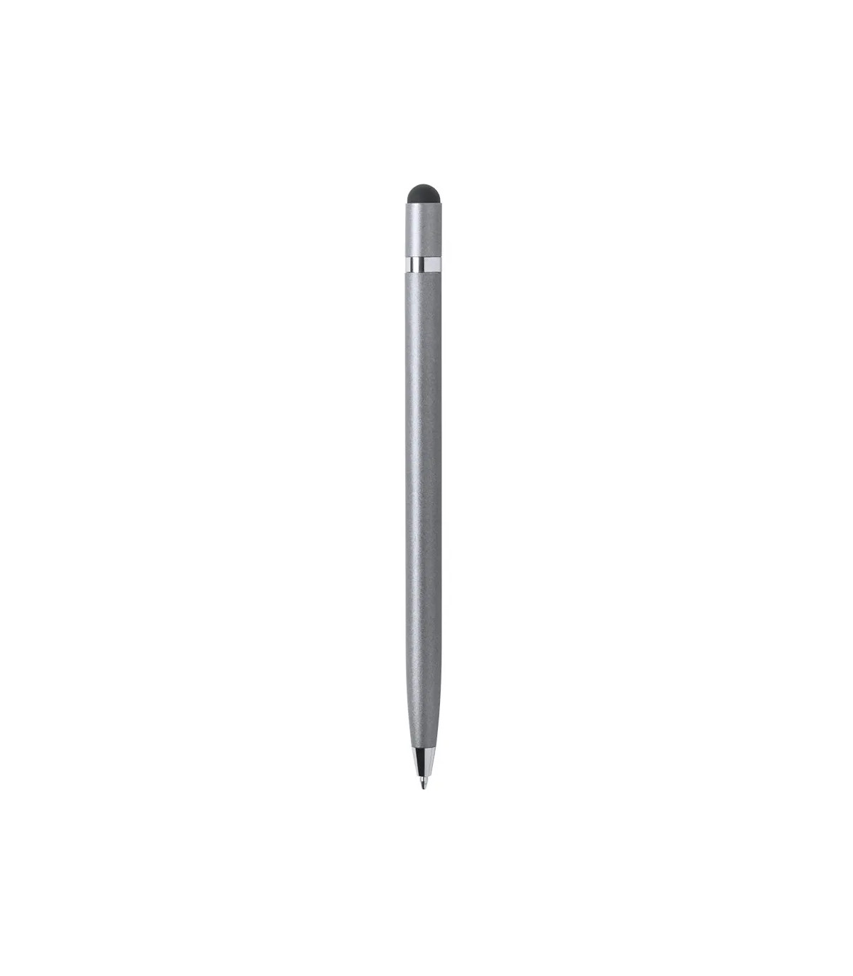 Bolígrafo puntero de mecanismo giratorio con cuerpo en aluminio de suave acabado metalizado. Con anilla cromada. Colores dorado, rosa, plateado y grafito con acabado brillo y color blanco con acabado mate. Tinta azul.