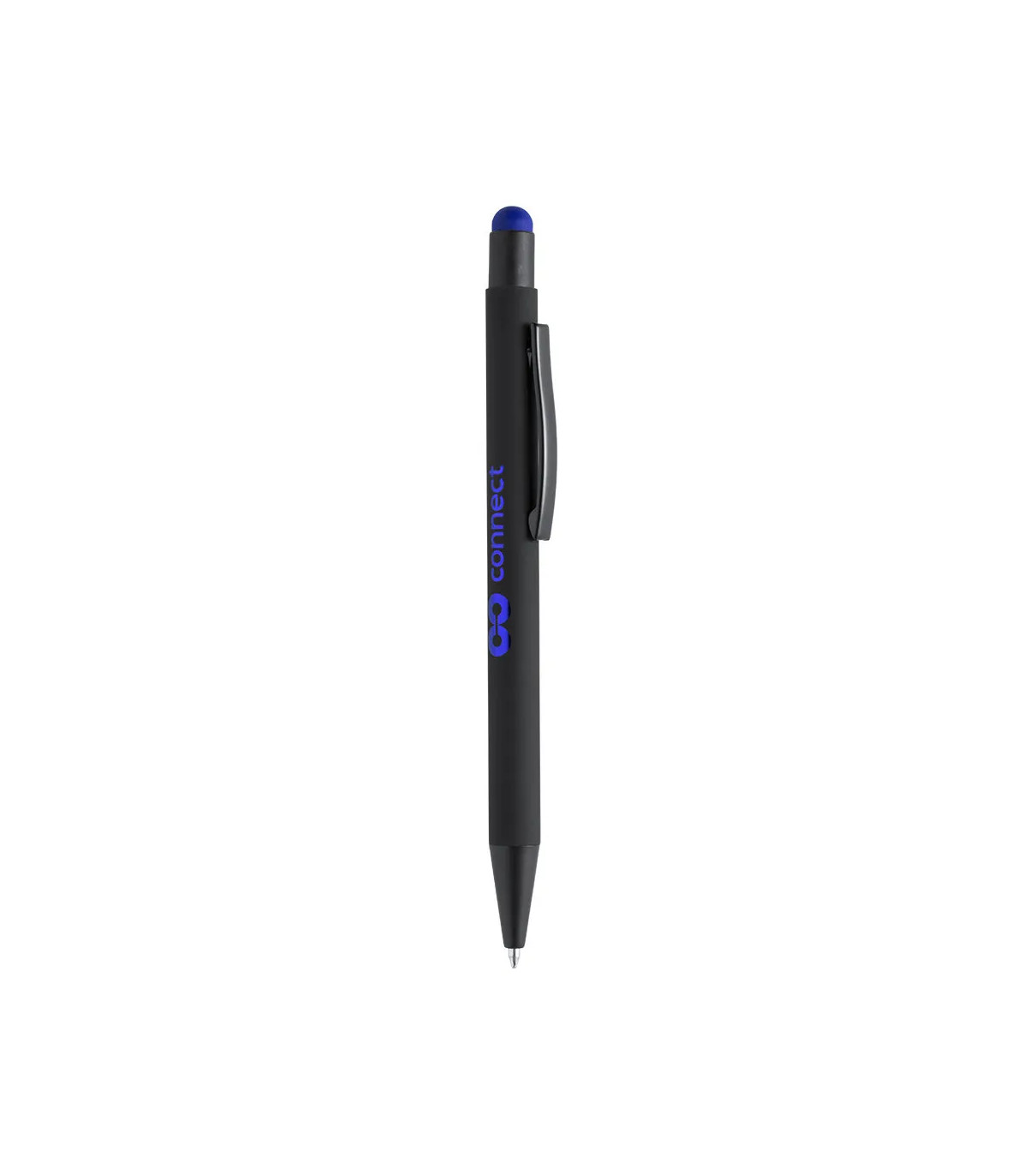 Bolígrafo puntero de mecanismo giratorio con cuerpo de acabado sólido en color negro y pulsador en variada gama de colores. Clip metálico en color negro. Especialmente diseñado para marcaje en láser y con un recubrimiento exterior especial para que tu publicidad quede perfectamente grabada, a juego con el color del puntero. Cartucho jumbo y tinta azul.