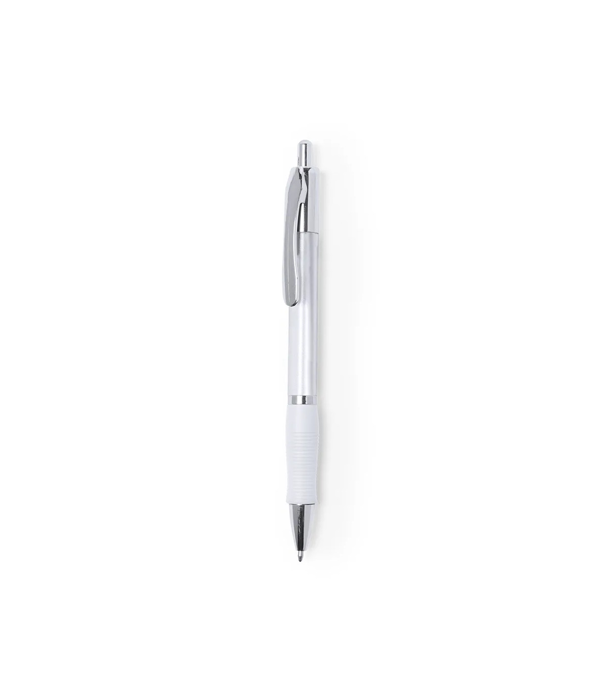 Bolígrafo de mecanismo pulsador de atrevido diseño bicolor y cuerpo de suave acabado en divertidos colores sólidos. Con cómoda empuñadura a juego y accesorios en acabado brillante. Tinta azul.