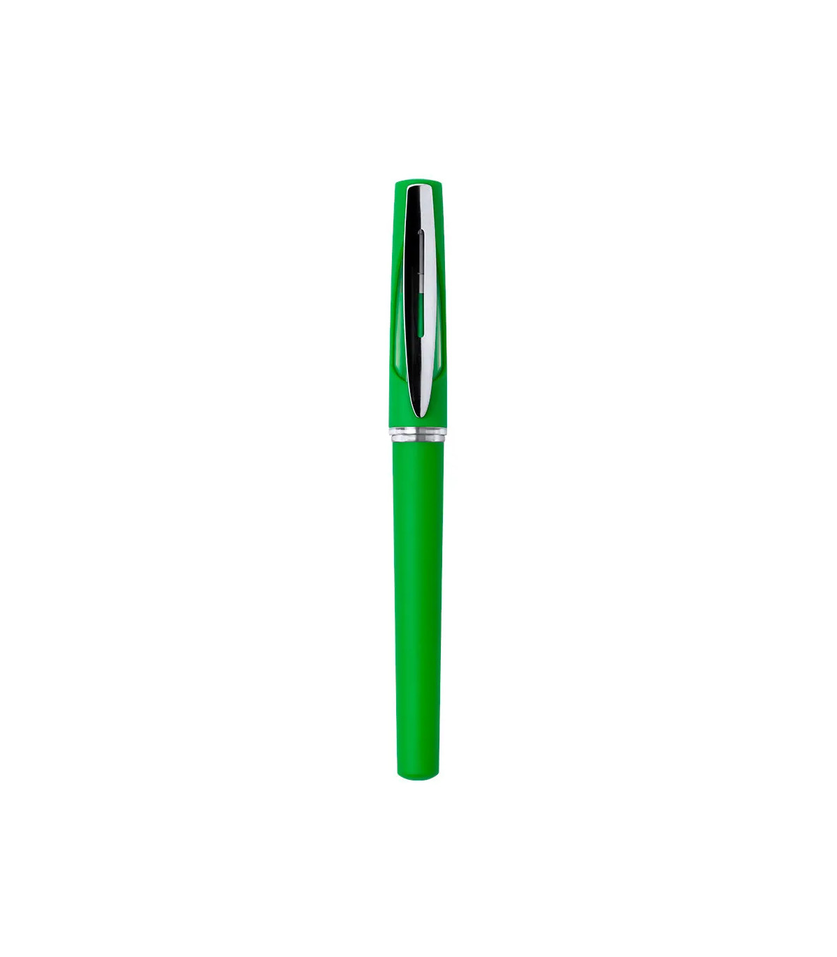 Roller de capucha de alegre diseño bicolor con cuerpo de suave acabado en llamativos colores metalizados y accesorios en color plateado brillante. De cartucho jumbo con tinta azul.