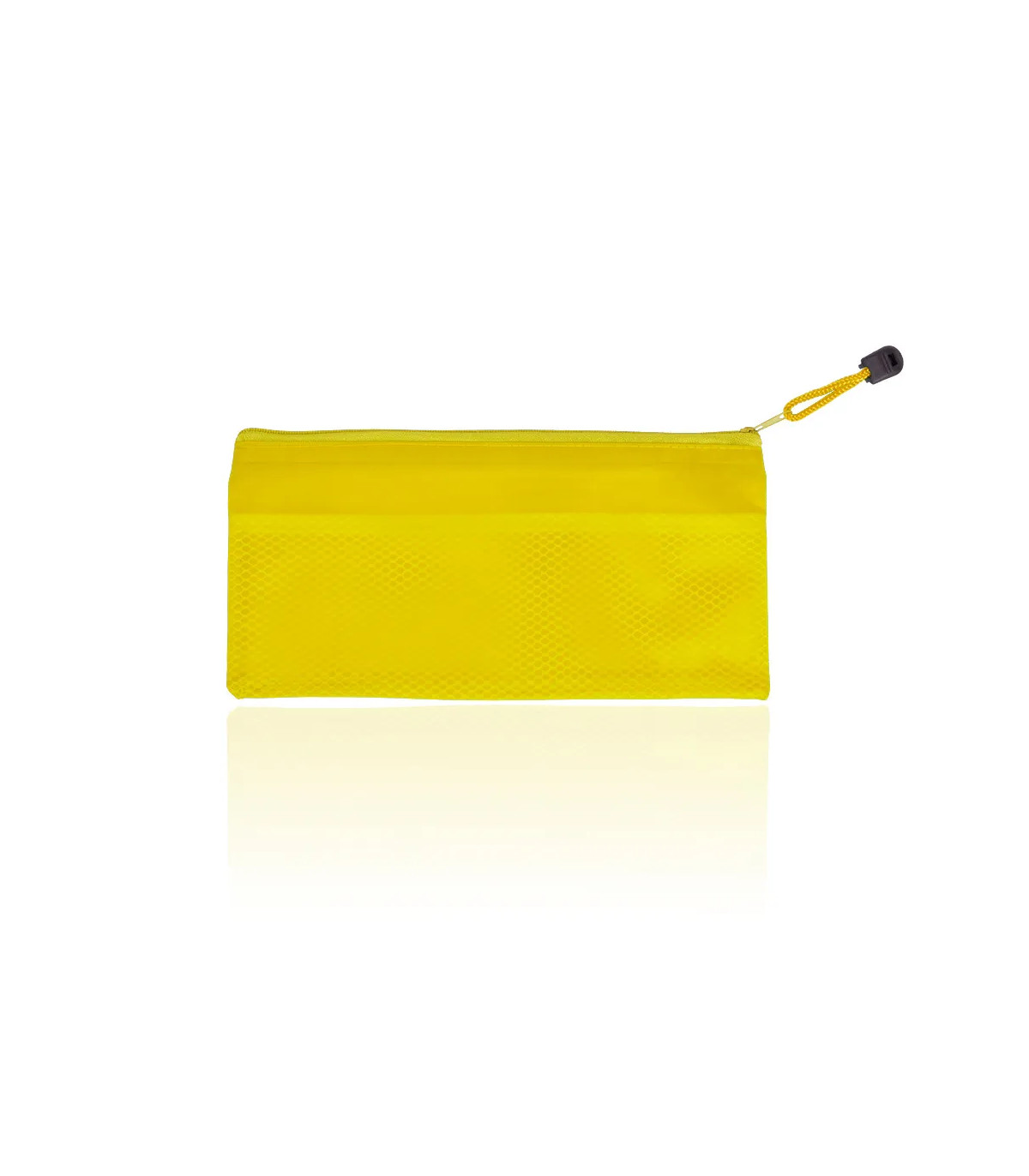 Estuche de cremallera acabado en PVC. 2 Compartimentos interiores con separador interior de rejila y cinta a juego en tirador para fácil apertura.Disponible en amplia gama de colores.
