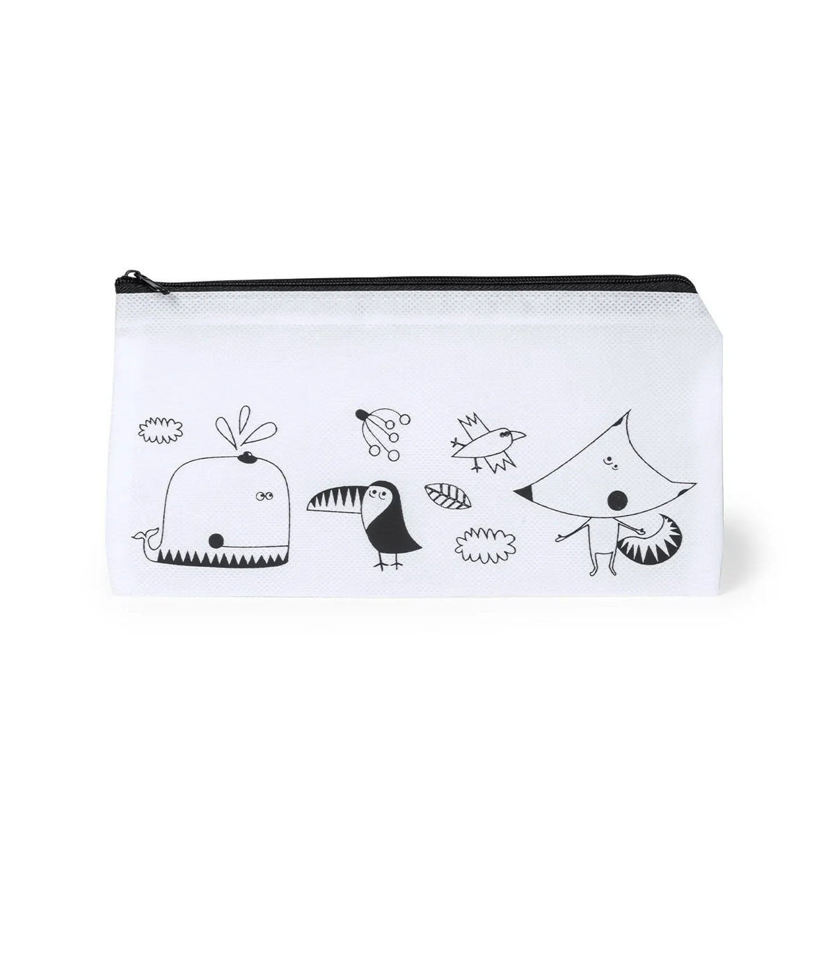 Estuche de non-woven en color blanco especialmente diseñado para colorear con ceras. Incluye 5 ceras de cuerpo cilíndrico en variados colores. Con cierre de cremallera en color negro.