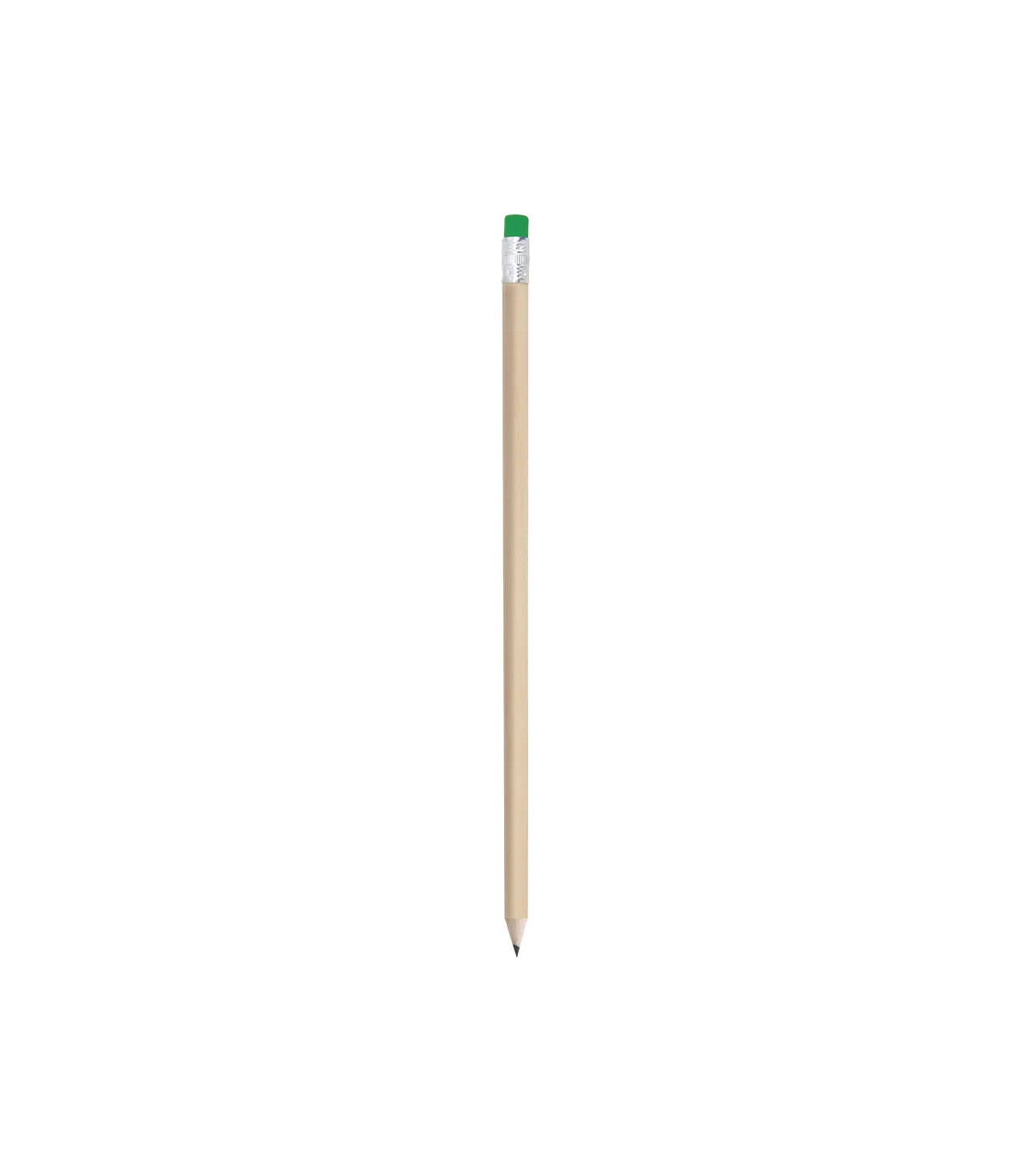 Lápiz de madera con cuerpo redondo en acabado natural y con goma de borrar en divertidos y variados colores. Punta sin afilar.