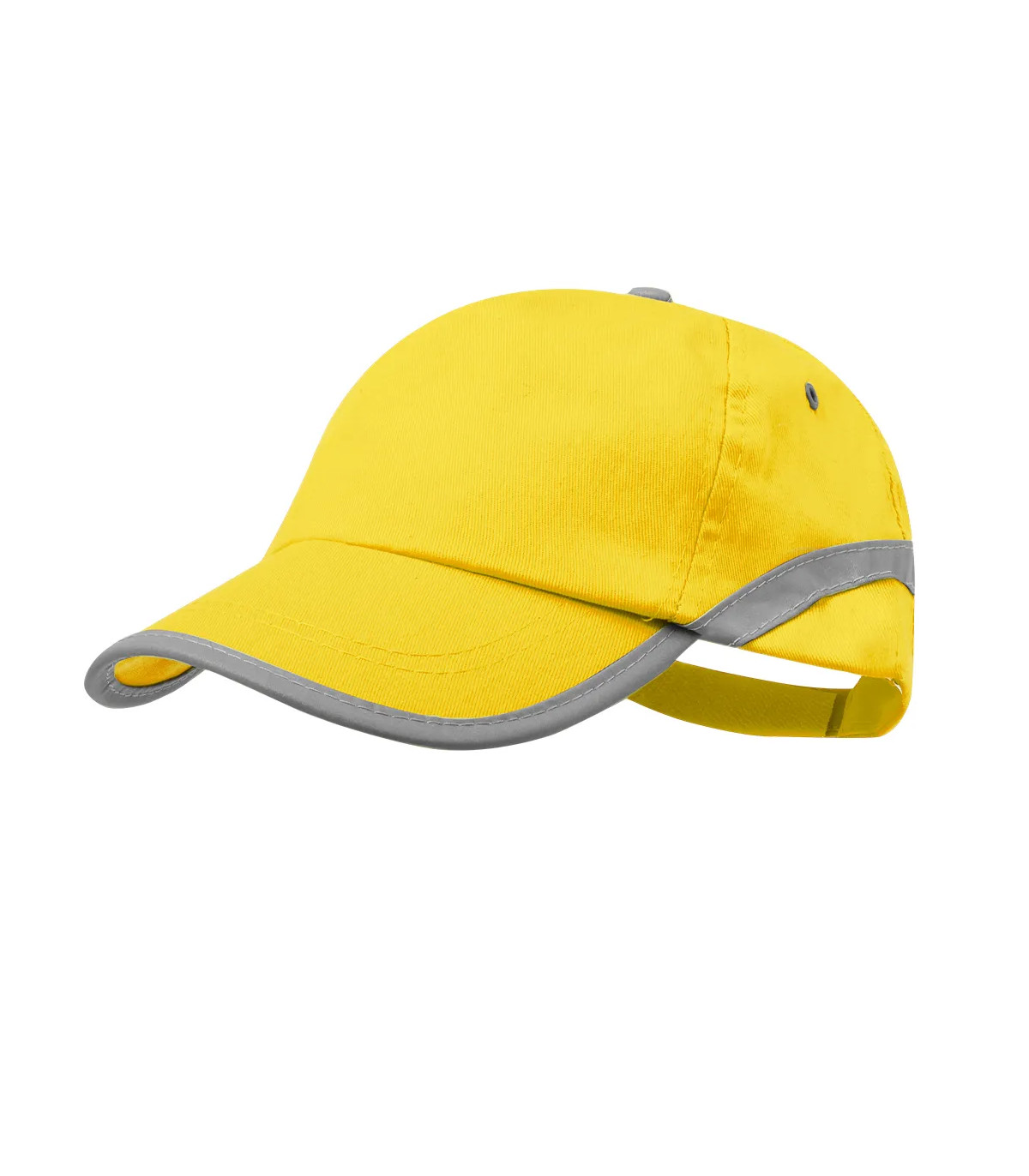 Gorra de 5 paneles en material 100% algodón y tira reflectante en visera y cuerpo. En variada gama de vivo colores, con orificios de ventilación bordados y cierre ajustable de velcro.