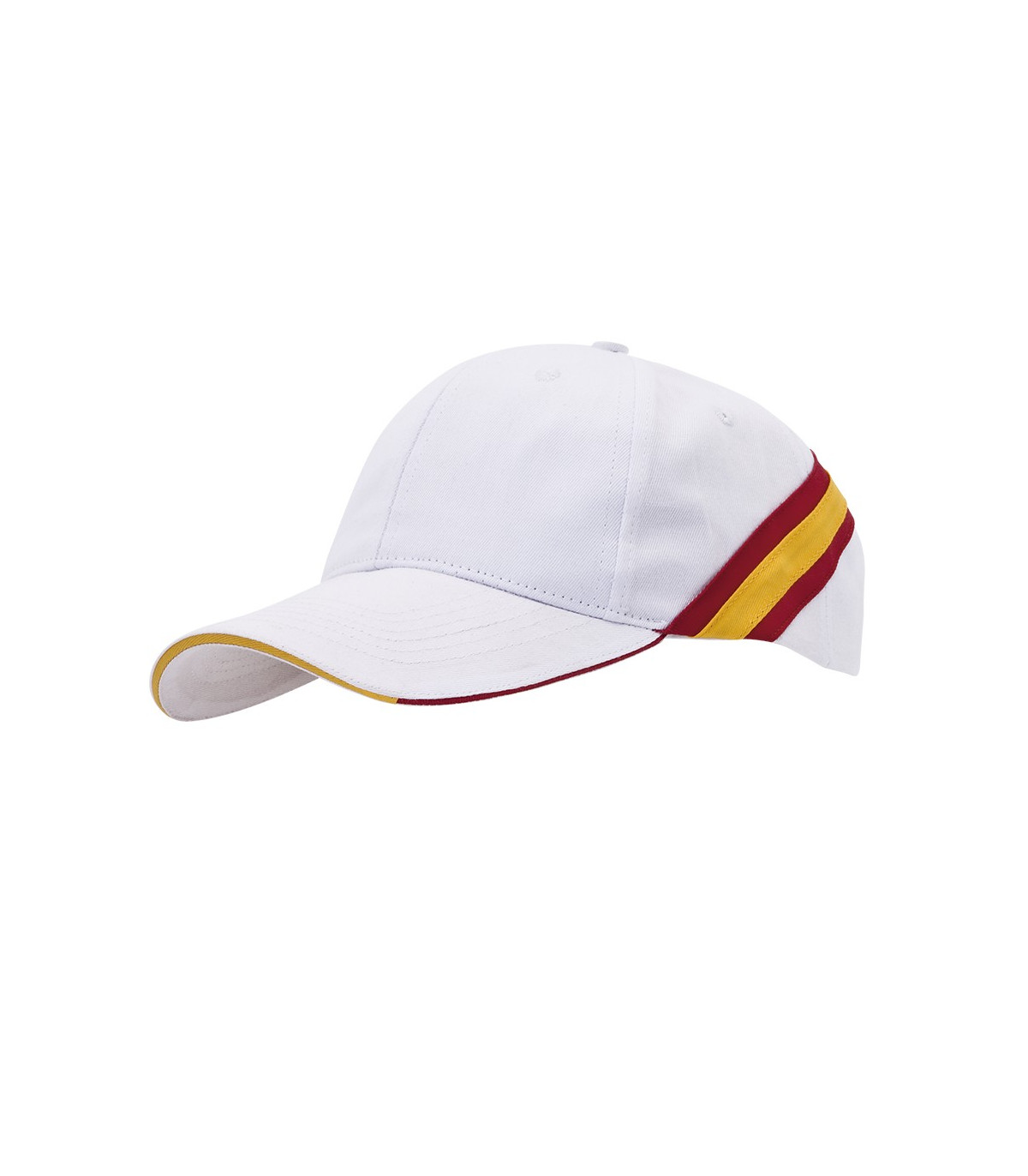 Gorra de diseño bandera nacional en material 100% algodón peinado. De 6 paneles, con sandwich tricolor y accesorios de bandera en laterales y parte trasera. Con orificios de ventilación bordados y cierre ajustable de velcro.