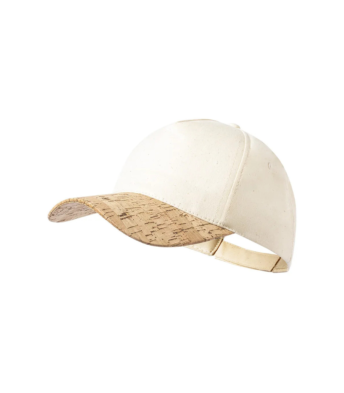 Gorra de línea nature de 5 paneles fabricada algodón orgánico, con visera en corcho natural. Con certificación GOTS (Global Organic Textile Standard, ó Norma Mundial de Textiles Orgánicos) que garantiza que los tejidos están hechos de fibras orgánicas. C
