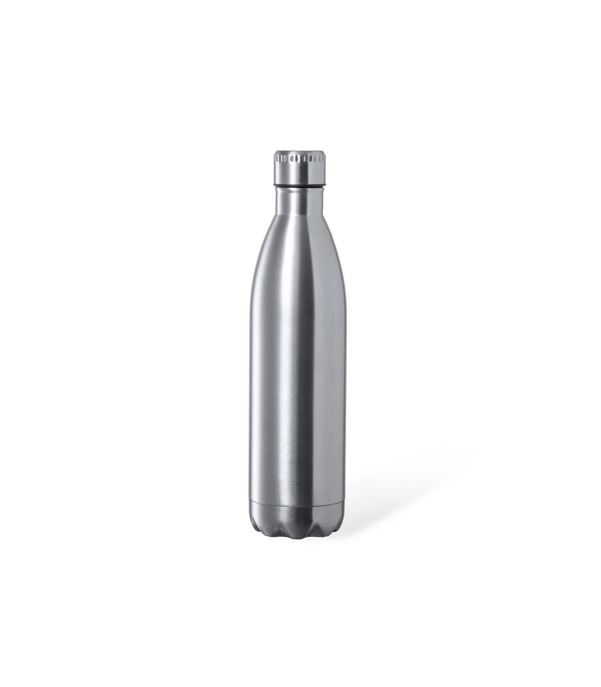 Bidón de 1 l de capacidad, fabricado en acero inox de acabado brillo. Con tapón a rosca en acero inox a juego, libre de BPA. Presentado en caja individual de diseño kraft.