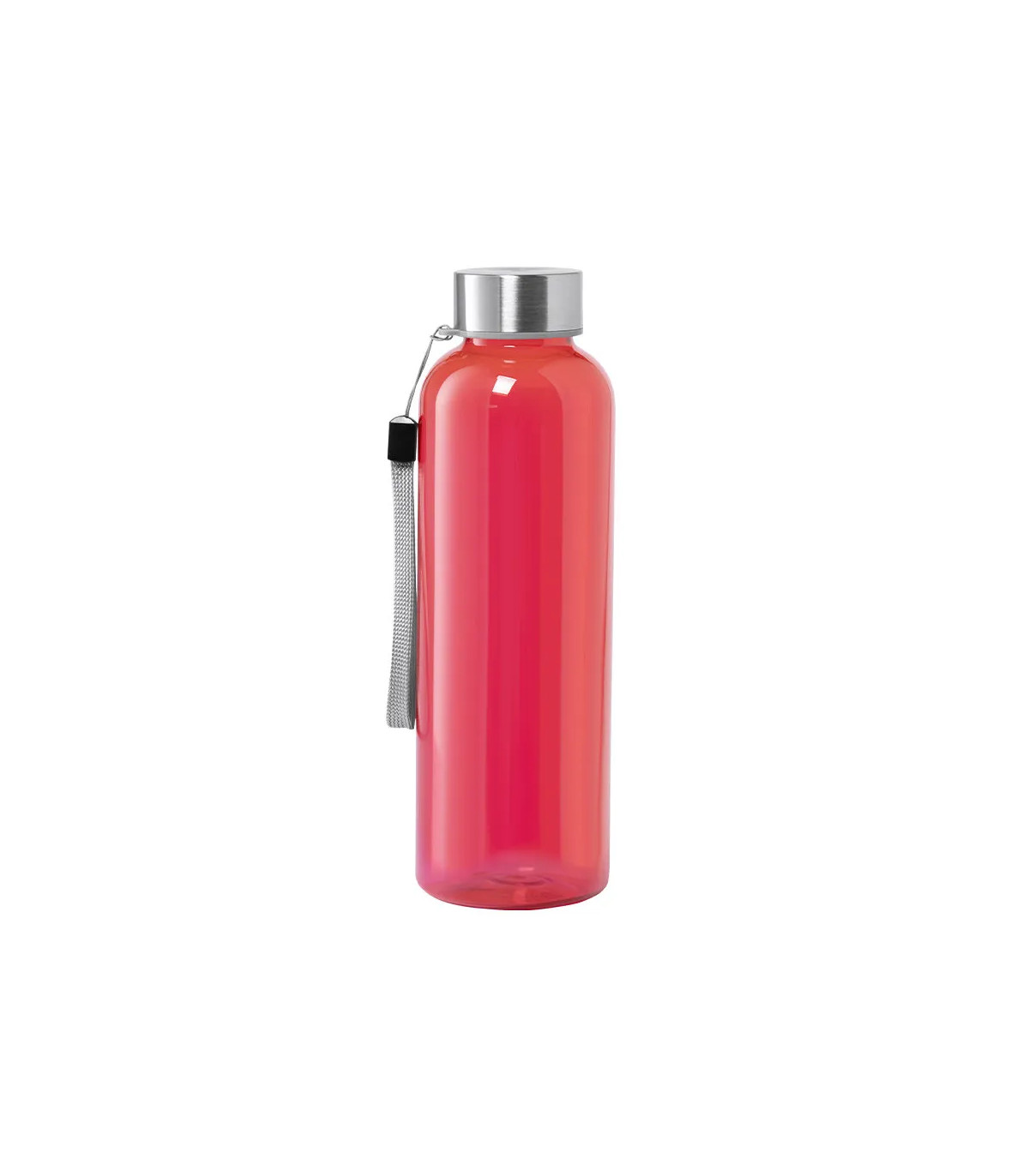Bidón de 600ml de capacidad. Libre de BPA, con cuerpo de RPET elaborado a partir de plástico reciclado para así fomentar la reutilización de residuos plásticos y contribuir a la sostenibilidad del planeta. Tapón a rosca en acero inox, con cordón de transp