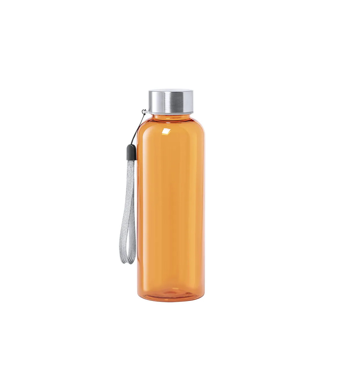 Bidón de 500ml de capacidad. Libre de BPA, con cuerpo fabricado en tritán transparente y de alta resistencia al calor. Tapón a rosca en acero inox, con cordón de transporte. Disponible en variada gama de colores.