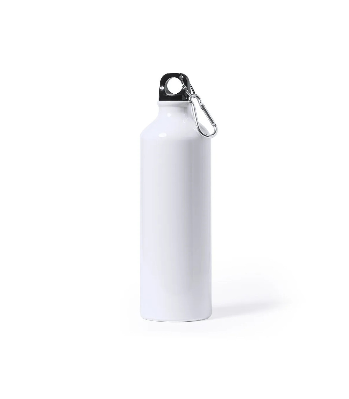 Bidón de aluminio de 800ml de capacidad. Acabado en suave y brillante color blanco, especialmente diseñado para marcaje en sublimación. Con tapón de seguridad a rosca y mosquetón metálico de transporte. Presentado en atractiva caja de diseño.