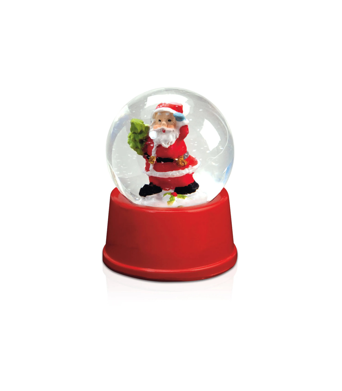 Bola de navidad con líquido interior con nieve y divertido diseño de Papá Noel. Presentada en caja individual con protección.