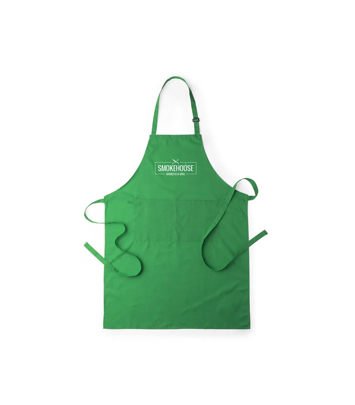 Delantal de alta calidad en material TC -combinado de algodón y poliéster-. En variada gama de vivos colores, con bolsillo doble frontal y cintas de cuello con ajustador. De corte por debajo de la rodilla.
