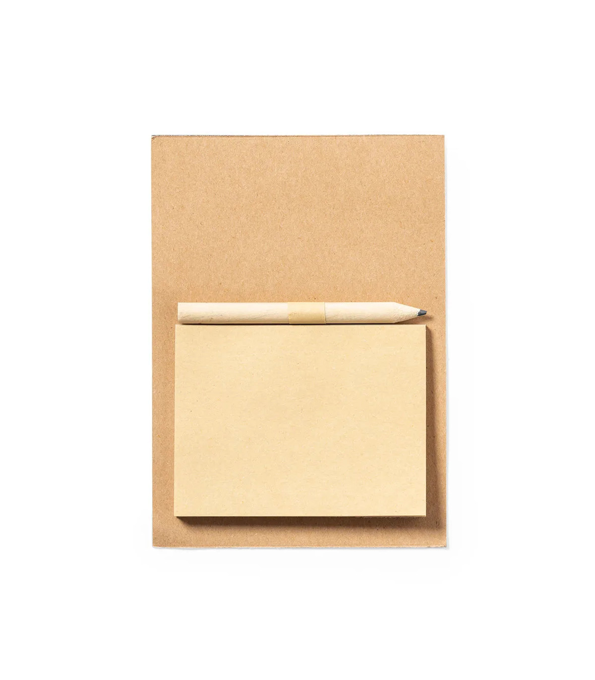 Imán para notas de línea nature. Fabricado en resistente papel reciclado, incluye minilápiz de madera y bloc de notas con 40 hojas lisas en color crema.
