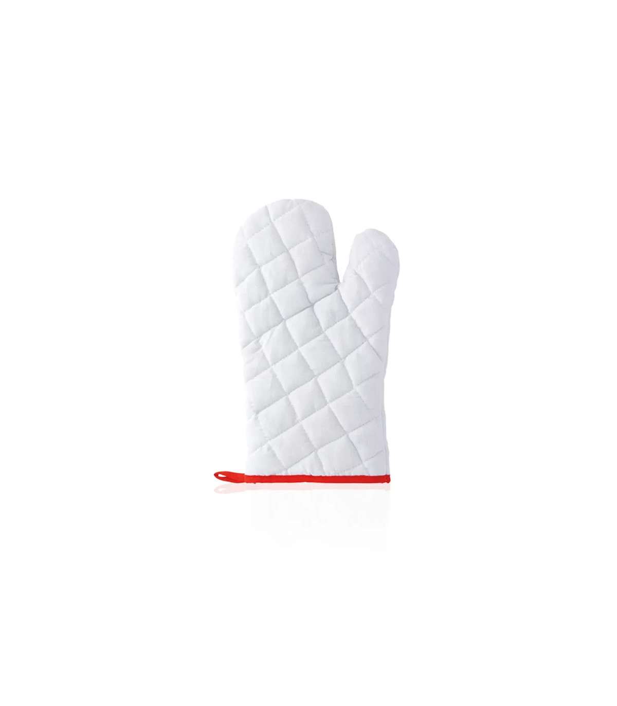 Manopla de cocina de alta calidad en suave material 100% algodón de vivos colores. Con una cara lisa especialmente diseñada para impresión y cinta para colgar.